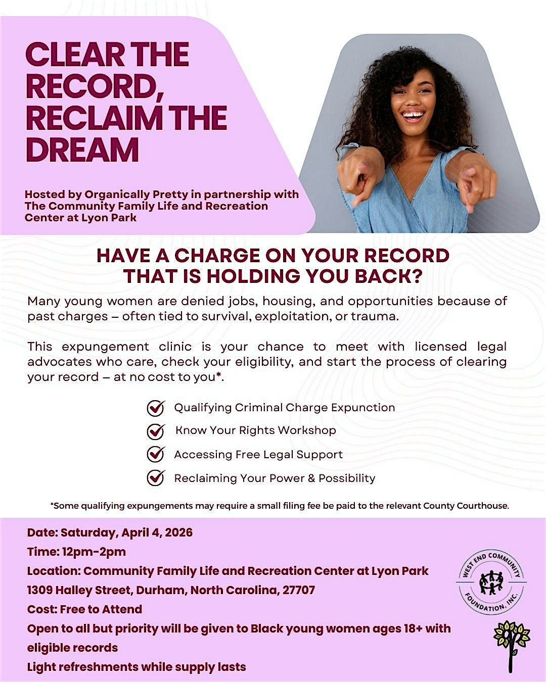 This expungement clinic is your chance to meet with licensed legal advocates who care, check your eligibility, and start the process of clearing your record— at no cost to you*.