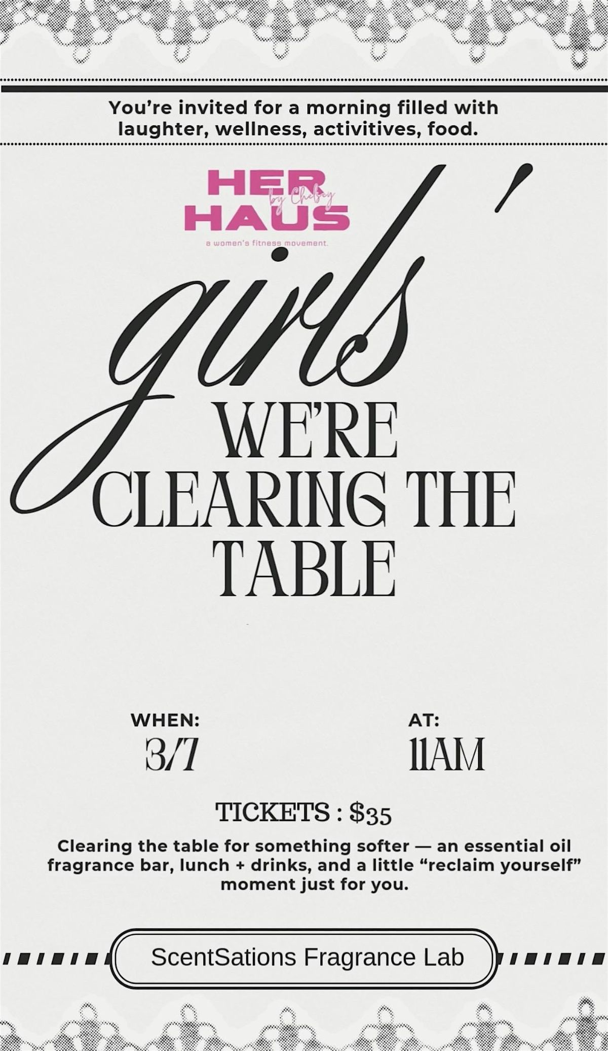 We’ll gather to “clear the table” — releasing what no longer serves us and reclaiming our moment through a guided reflection experience. Enjoy a late lunch, curated drinks, and create your own custom essential oil blend to take home as a reminder of the space you’re stepping into next.