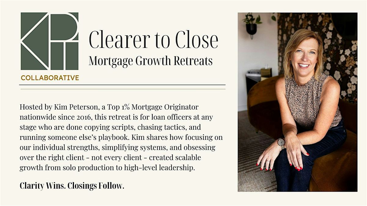 Hosted by Kim Peterson, Top 1% Mortgage Originator nationwide since 2016, this retreat helps you strip away what’s creating friction and build systems that match your natural strengths.
