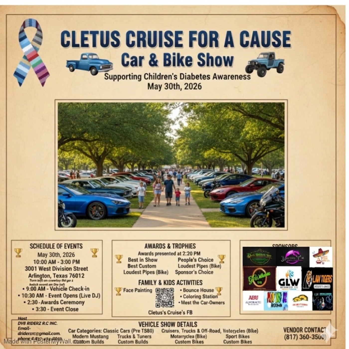 Get ready to rev those engines for a great cause! The Cletus Cruise for a Cause is coming to Arlington this May, bringing together the local car and bike community to support Children’s Diabetes Awareness.