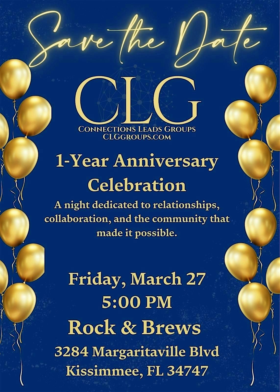 Hey there! Get ready for the CLG - 1 year Anniversary bash. It’s an awesome chance to hang out in person, catch up with friends, and make new memories. We'll have great vibes, fun activities, and lots of surprises. Don’t miss out on this special day!