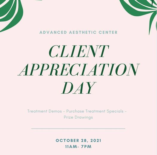 Join the team at Advanced Aesthetic Center for our Client Appreciation Open House.Drop by to see LIVE demonstrations, enjoy food and drinks and receive discounts on skincare, treatments and injectables.