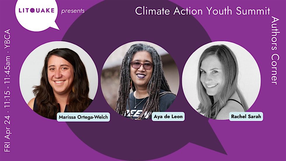 In support of Climate Action Youth Summit (CAYS), Litquake has collaborated on the Authors Corner , a lunchtime lecture series (11:15-11:45am) with climate-oriented journalists and writers, Marissa Ortega-Welch, Aya de Leon, and Rachel Sarah.