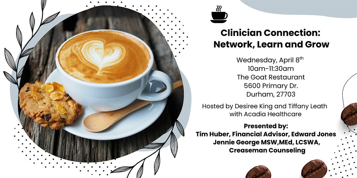 Join local clinicians for coffee, networking, and a discussion on how financial stress affects clients’ mental health and relationships.