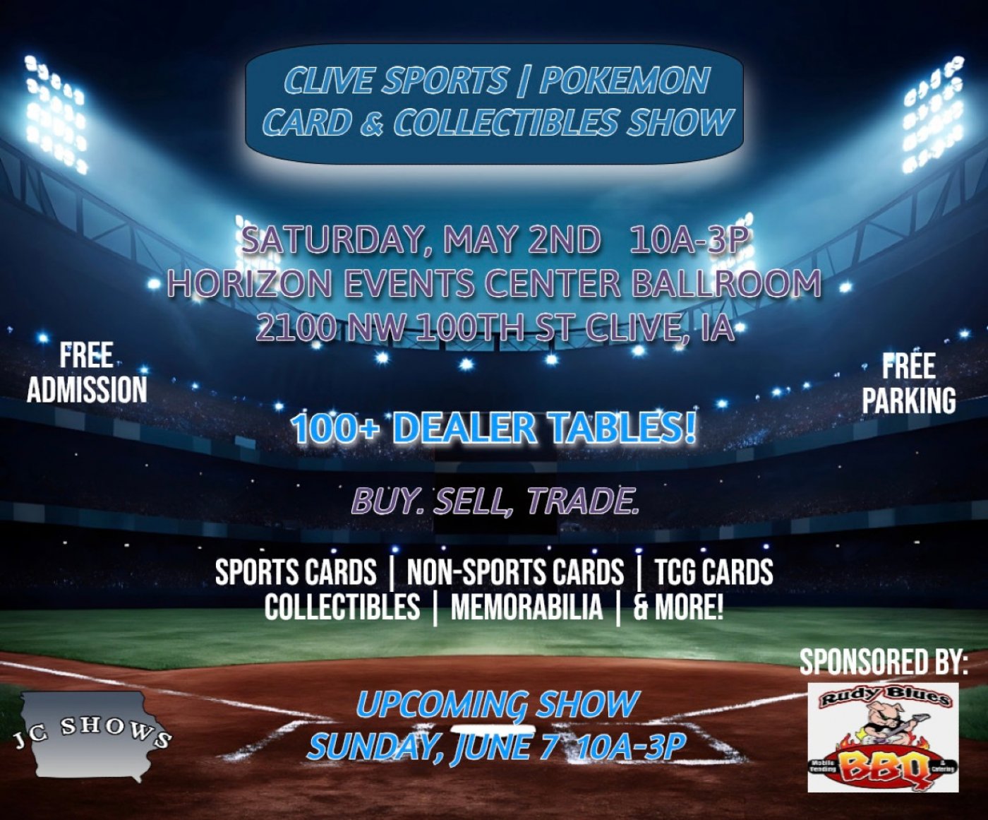 #JCShows #CardShow #SportsCards #TCG #MidwestCollectors #CedarRapids #Collectibles #Pokemon #MTG #OnePieceCards #IowaEvents #RudyBluesBBQ #horizoneventscenter