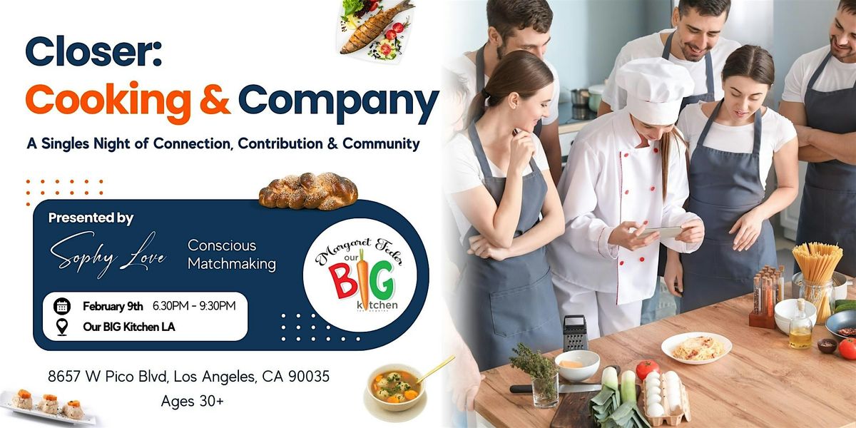 Closer: Cooking & Company is a unique singles experience for people in their 30s–50s who want real connection, not swiping. One week before Valentine’s Day, we’re coming together to cook meals for neighbors experiencing food insecurity in Los Angeles, in partnership with Our Big Kitchen LA (OBKLA), while creating space for authentic, human-to-human connection along the way.