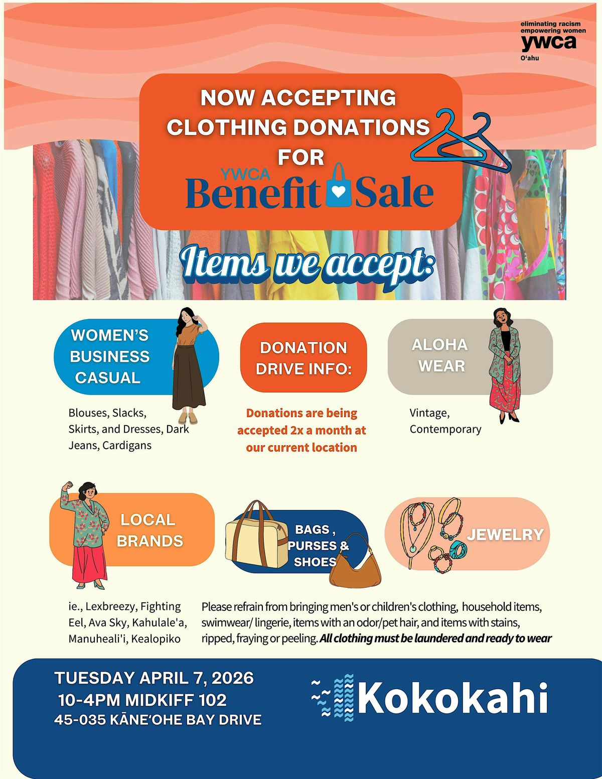 Women’s Business Casual, Aloha Wear, Local Brands, Bags & Purses,Jewlrey & Accessories.