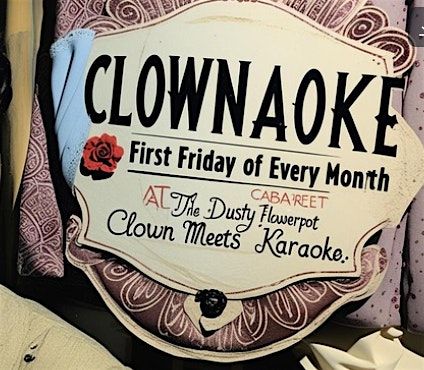 8 pm The Clownaoke begins! Hosted by Gloria --infamous over the hill chorus girl -- and Bobby Johnsey - your favorite lounge singing furniture re-sales man and ocassional striper. You can bring any character you like to sing karaoke without coming to the workshop, anything welcome....There's only one rule; you just can't be yourSELF...you have to be anyone else.