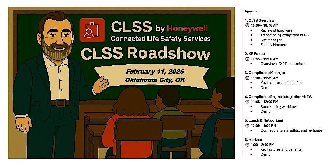 Explore Honeywell's CLSS Connected Life Safety Services at our Roadshow! Discover tools for efficiency and compliance. Sign up now!About this Event