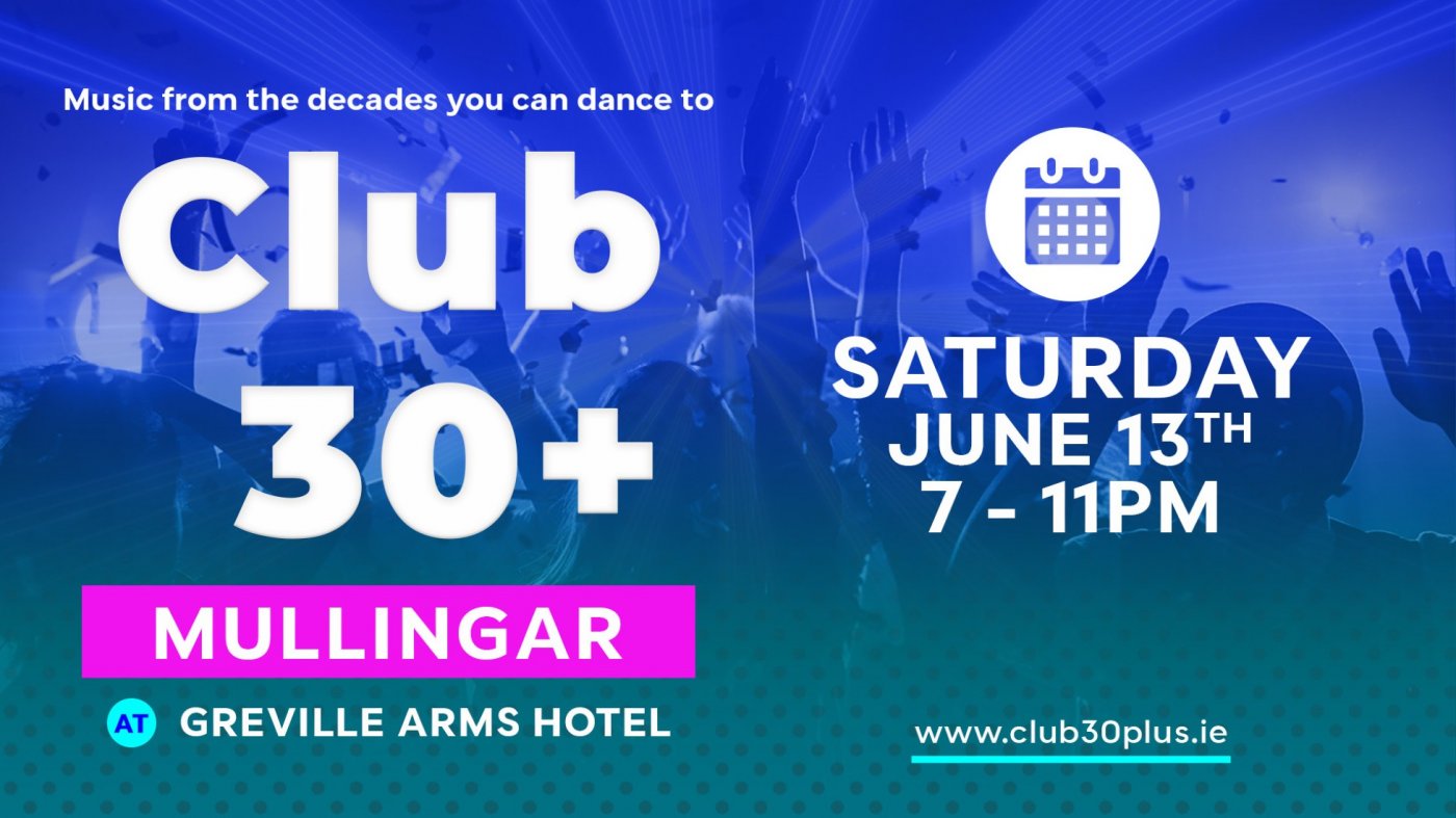 Get ready to dance the night away with the over 30s crew at Club 30+ MULLINGAR - it's going to be a night to remember!