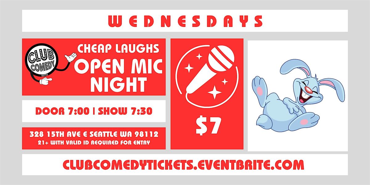 Club Comedy Seattle Cheap Laughs Open Mic Night 2/18/2026 7:30PM