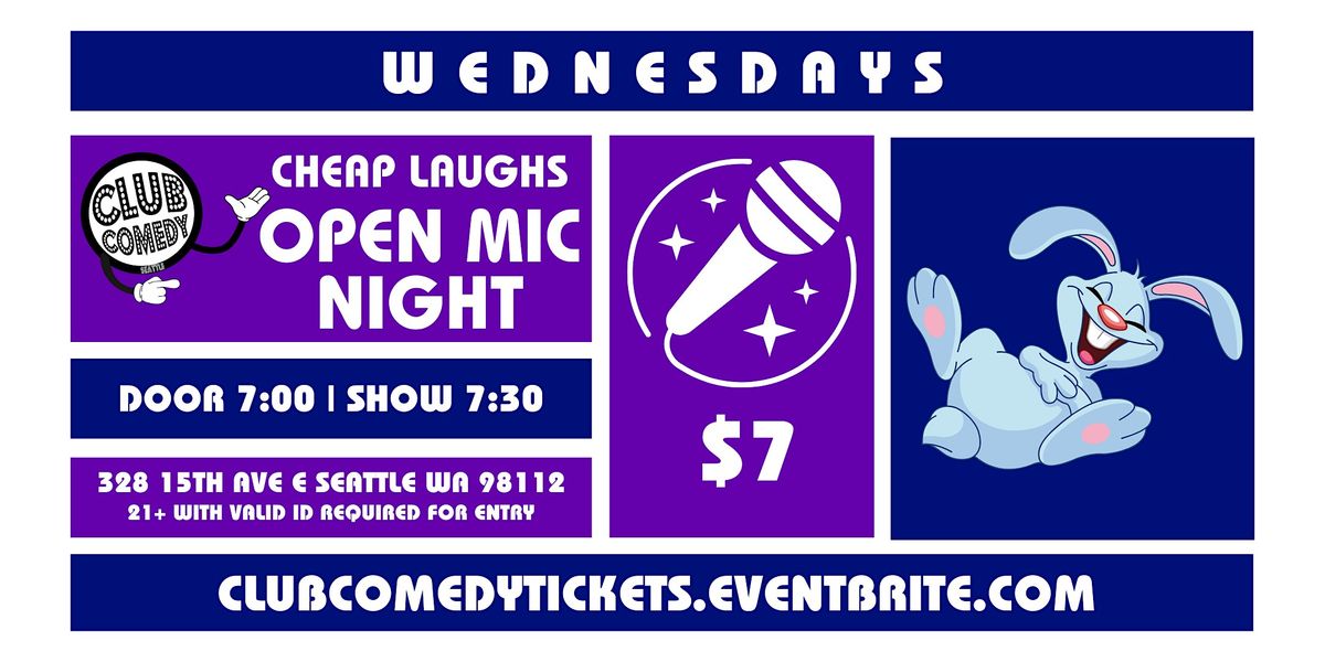 Club Comedy Seattle Cheap Laughs Open Mic Night 4/29/2026 7:30PM