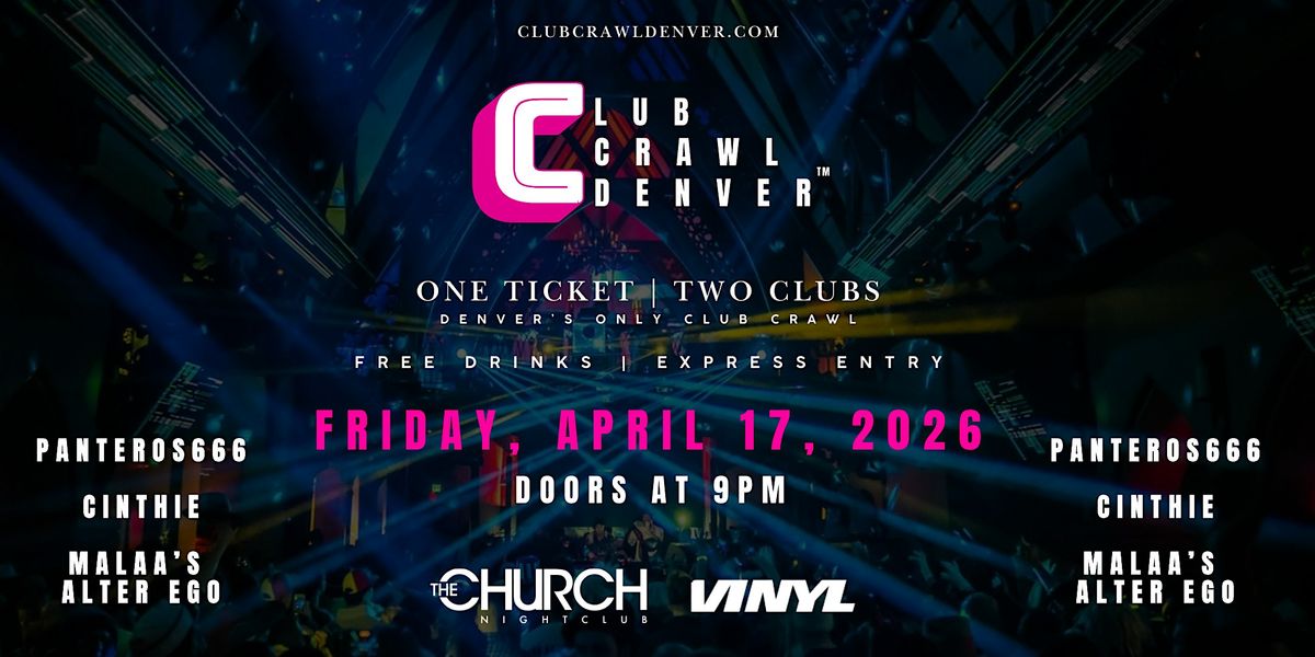 Club Crawl is Denver's #1 nightlife experience that brings you VIP express entry to both Church Nightclub and Club Vinyl and two complimentary drink tickets, all with one ticket.