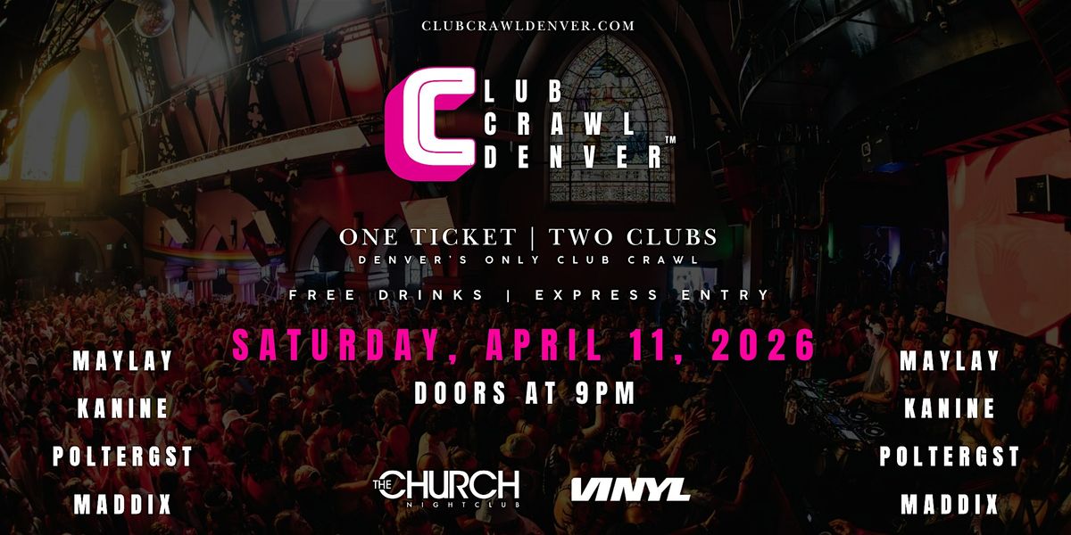 Club Crawl is Denver's #1 nightlife experience that brings you VIP express entry to both Church Nightclub and Club Vinyl and two complimentary drink tickets, all with one ticket.