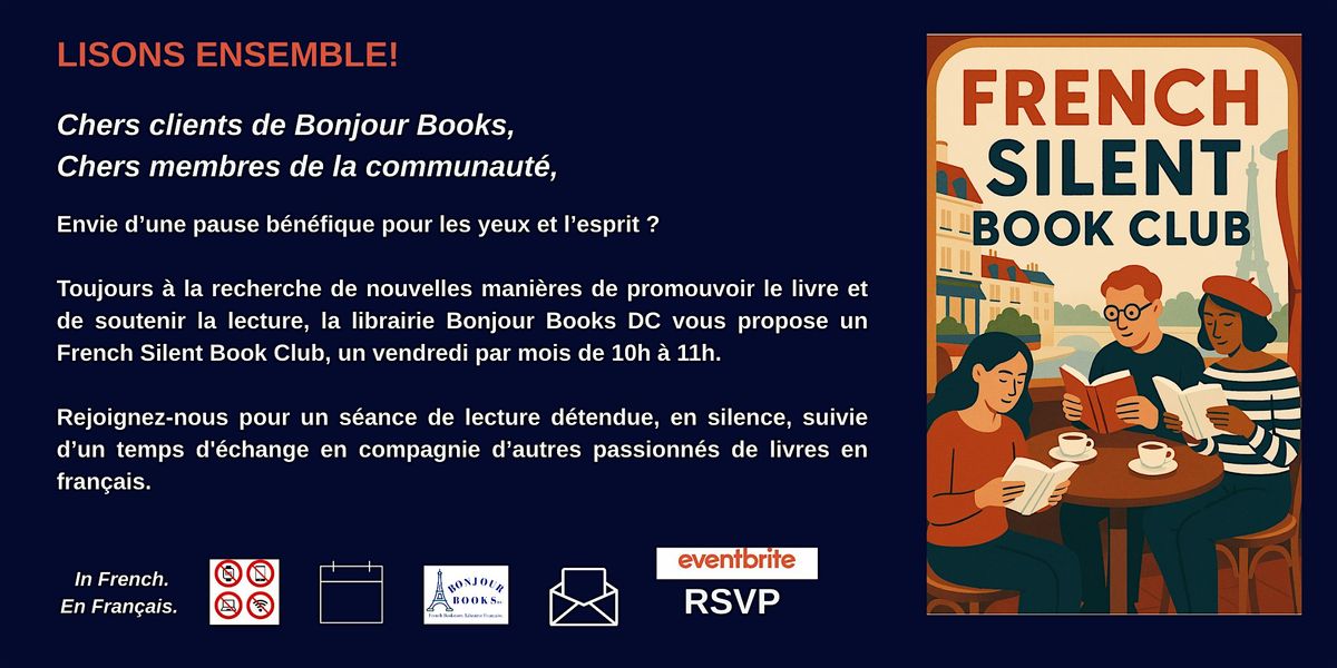 Toujours à la recherche de nouvelles manières de promouvoir le livre et de soutenir la lecture, la librairie Bonjour Books DC vous propose un French Silent Book Club, un vendredi par mois de 10h à 11h.