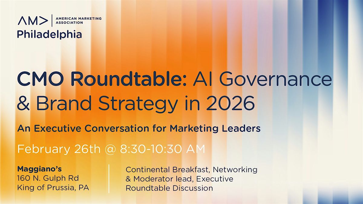 AMA Philadelphia invites senior-level marketing leaders to an exclusive CMO Roundtable designed for Directors, VPs, and C-suite executives on both the brand and agency sides. This discussion will bring peers together for a candid, forward-looking conversation on AI governance and brand strategy in 2026 and beyond.