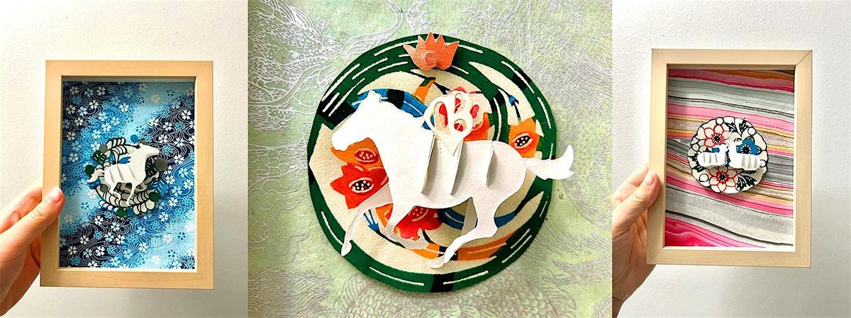 Multiple patterns and colors of paper to choose from. Each participant will finish a mini art of flying horse at the end of the workshop. All materials inclusive including the fram. Pre-registration at least one day in advance requested for material prep. All ages welsome.