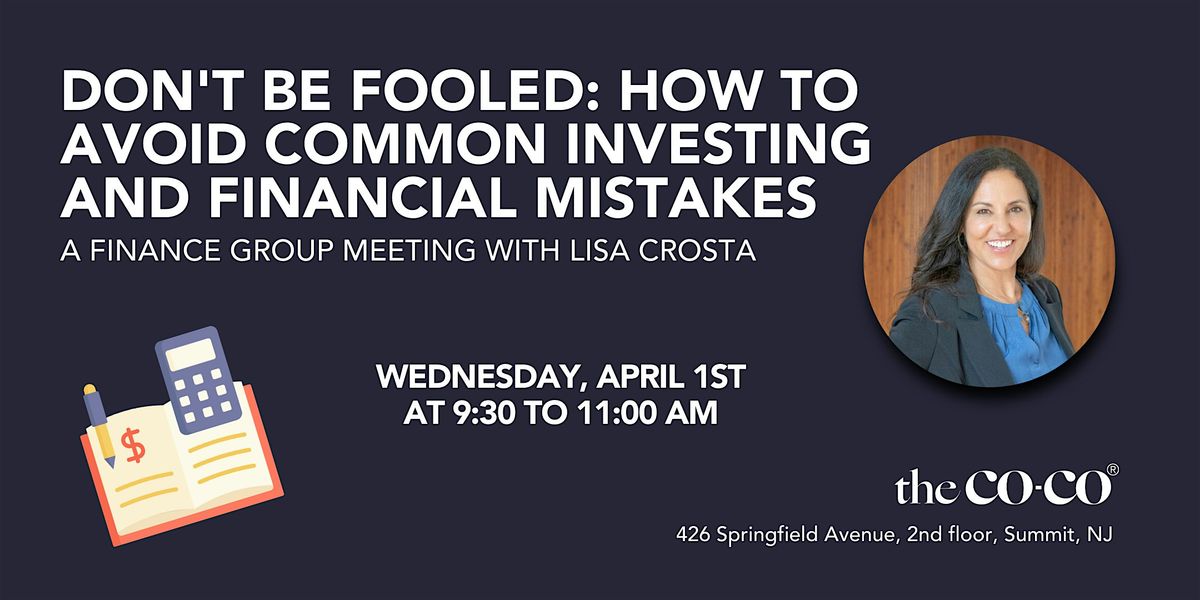 Join us for our March Finance Group meeting: "Don't Be Fooled: How to Avoid Common Investing and Financial Mistakes", presented by Lisa Crosta.