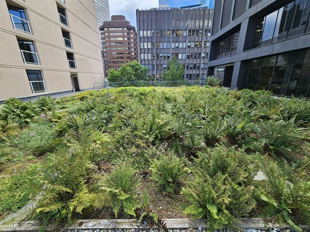 Regrets: This green roof is not mobility-inclusive; access is by 4 flights of stairs. However, our post-tour GRIN social will take place on the roof garden of the Coal Harbour community centre.
