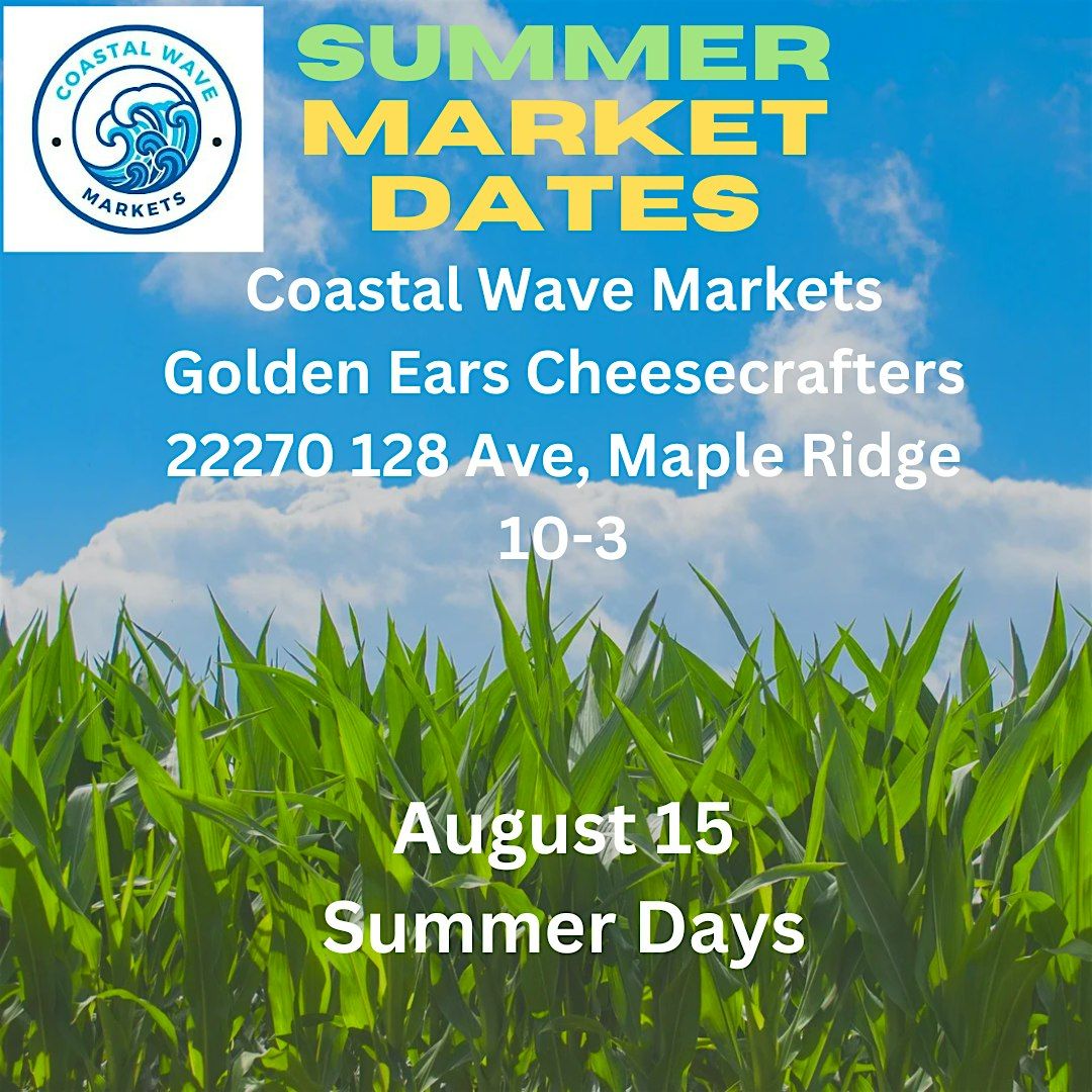 Coastal Wave Markets presents our Summer Markets at Golden Ears Cheesecrafters. Maple Ridge.