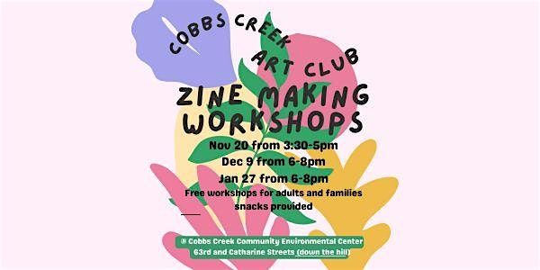 Welcome to the Cobbs Creek Art Club! Join us for a drawing workshop on January 27th from 6-8pm at Cobbs Creek Community Environmental Center. We will draw plants that grow in Cobbs Creek. Drawings created in this workshop will create coloring book pages for a zine to be printed in the spring! This free event is family friendly, for all ages, and refreshments will be provided. Please RSVP