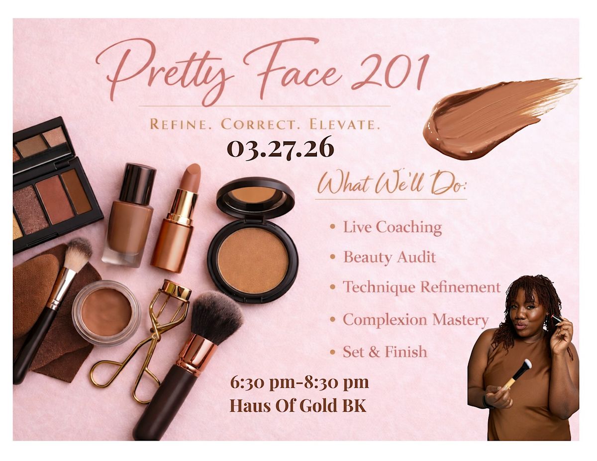 The Pretty Face (201) is a warm, hands-on beauty class designed for the woman who knows the basics but wants her makeup to look smoother, more polished, and more intentional.