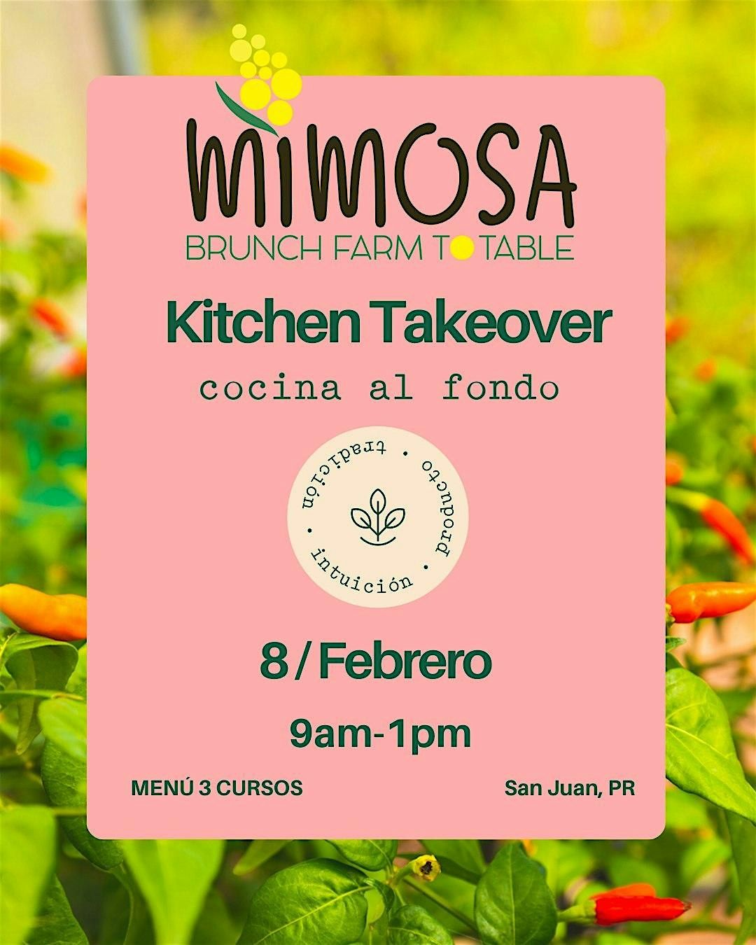 ¡Prepárate para un brunch increíble en Cocina al Fondo - Mimosa Kitchen Takeover! Ven a disfrutar de sabores únicos y una atmósfera súper relajada. Este evento es presencial, perfecto para conectar, comer rico y pasarla bien entre amigos o familia. No te lo pierdas, ¡Mimosa Brunch toma el control y tú eres el invitado especial!