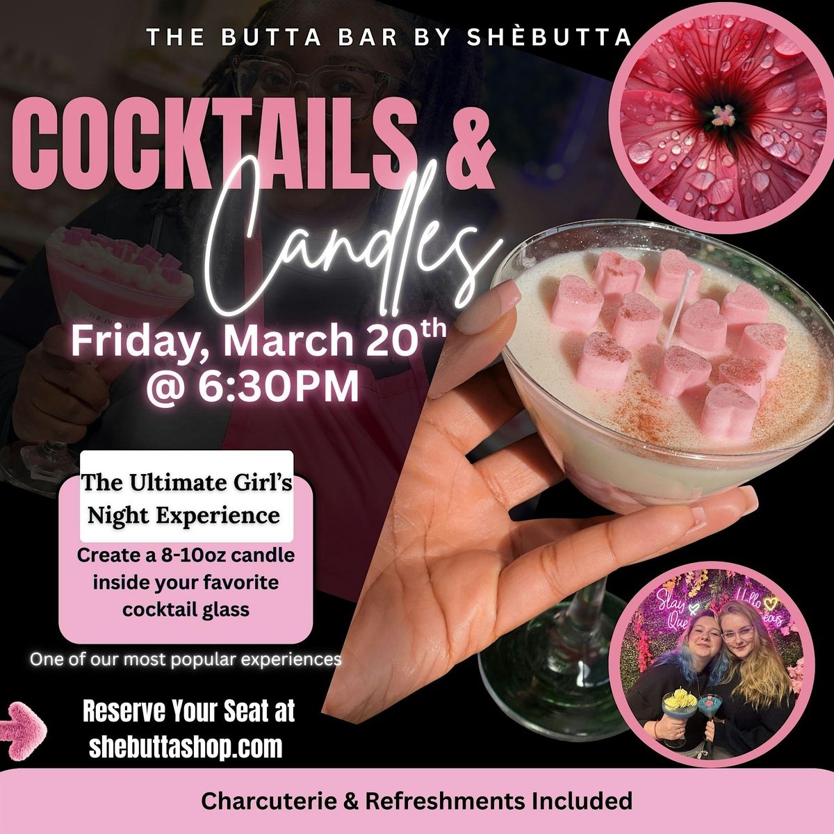 Looking for the perfect girls night out in Indianapolis? Grab your friends and join us at The Butta Bar by SheButta for a fun and creative evening of candle making, good vibes, and delicious bites.