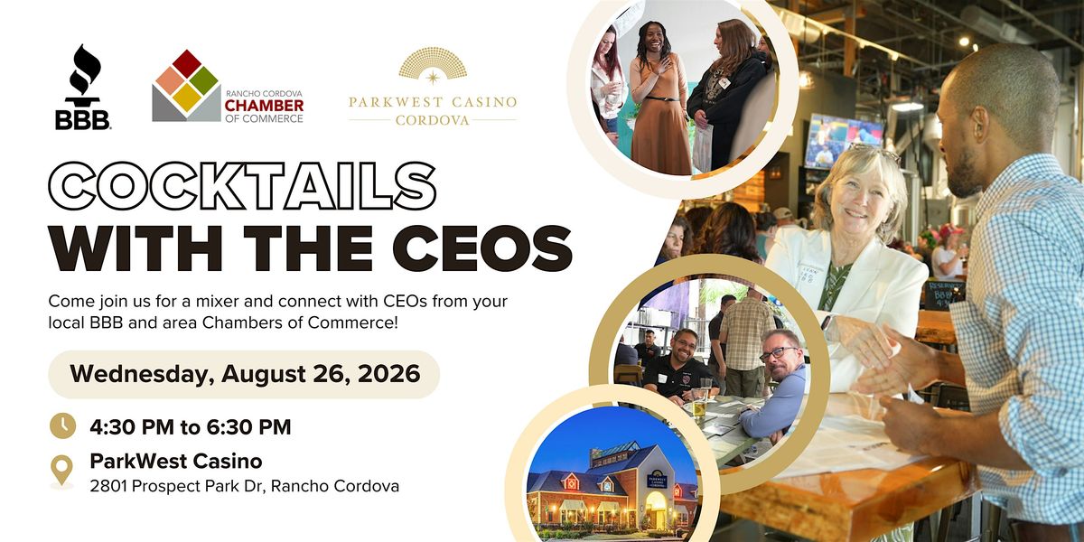 Join the Better Business Bureau of Northeast California and the Rancho Cordova Area Chamber of Commerce for Cocktails with the CEOs, Wednesday, August 26th