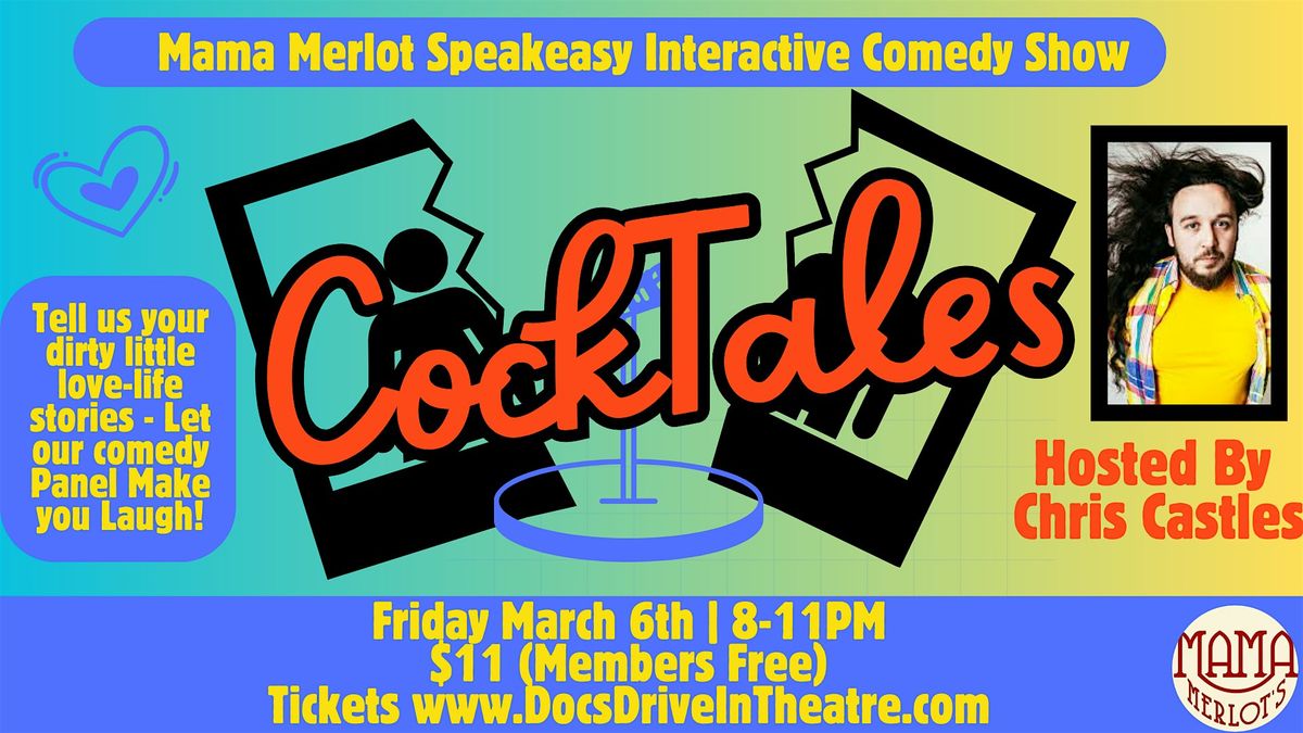 Get ready for a fun night at Mama Merlot's Speakeasy! Join us on March 6, 2026 at 8:00 PM (Central Time) for Cocktales, an interactive comedy show where you’re part of the laughs. Bring your friends, enjoy the vibes, and let's make some hilarious memories together. Don’t miss out on this unique blend of cocktails and comedy in a cozy speakeasy setting!