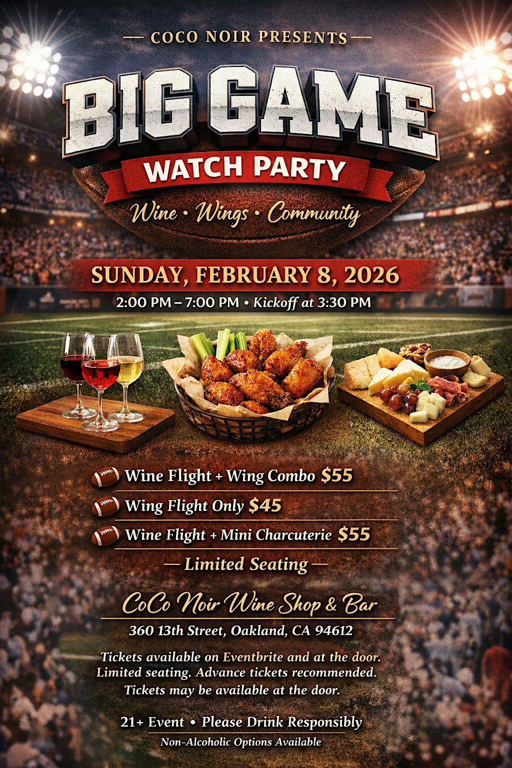 CoCo Noir Big Game Watch Party | Wine Flights, Wings & Community
