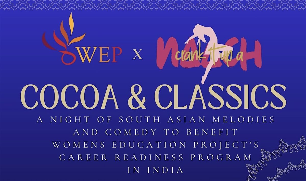 Get ready for a cozy evening at Cocoa & Classics! Join us in-person for a relaxed open mic night where you can sip on delicious hot cocoa (or wine) and enjoy live performances from local South Asian vocal, guitar, and comic artists - all while raising money for and learning more about Womens Education Project, an incredible NYC non-profit that runs career and leadership development program for young women in India. Your entire ticket money goes towards the organization