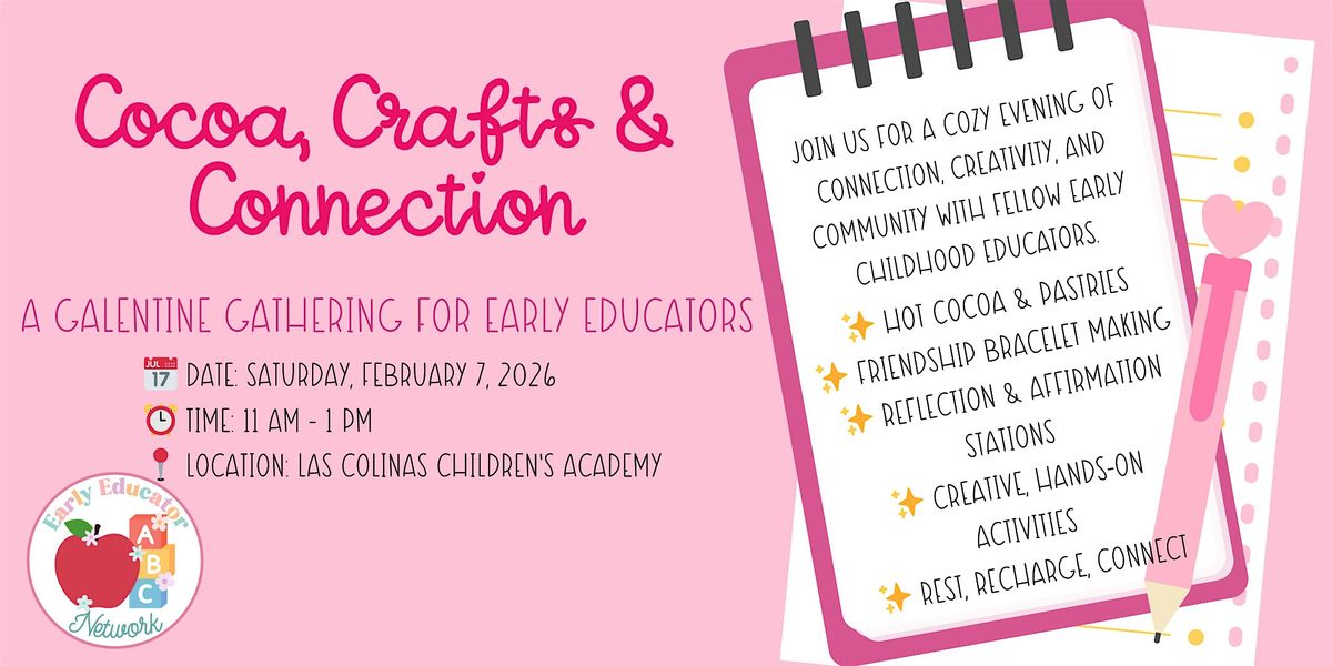 Cocoa, Crafts & Connection is a cozy Galentine’s Day event hosted by the Early Educators Network (EEN), designed to create space for connection, creativity, and community among early childhood professionals.