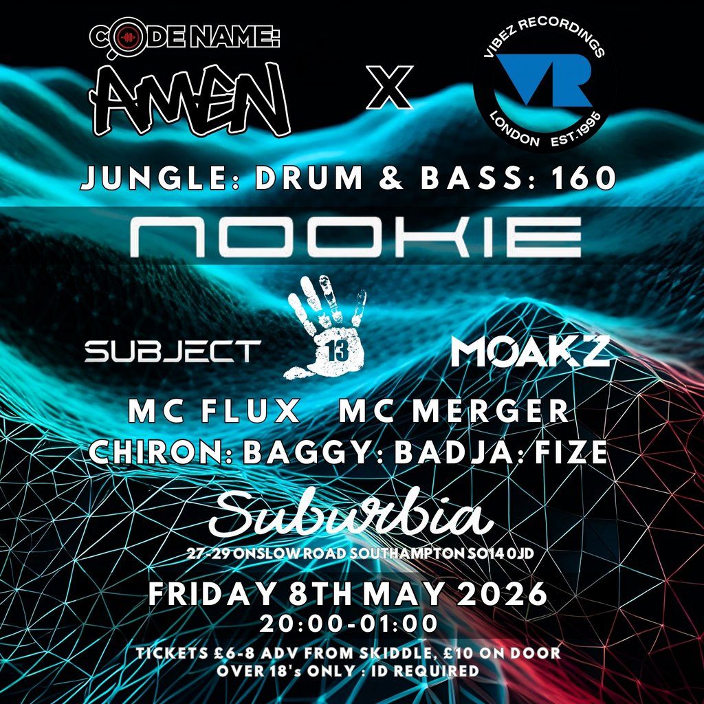 Codename Amen & Vibez Recordings team up this May bringing a heavyweight line up to Suburbia!Artists