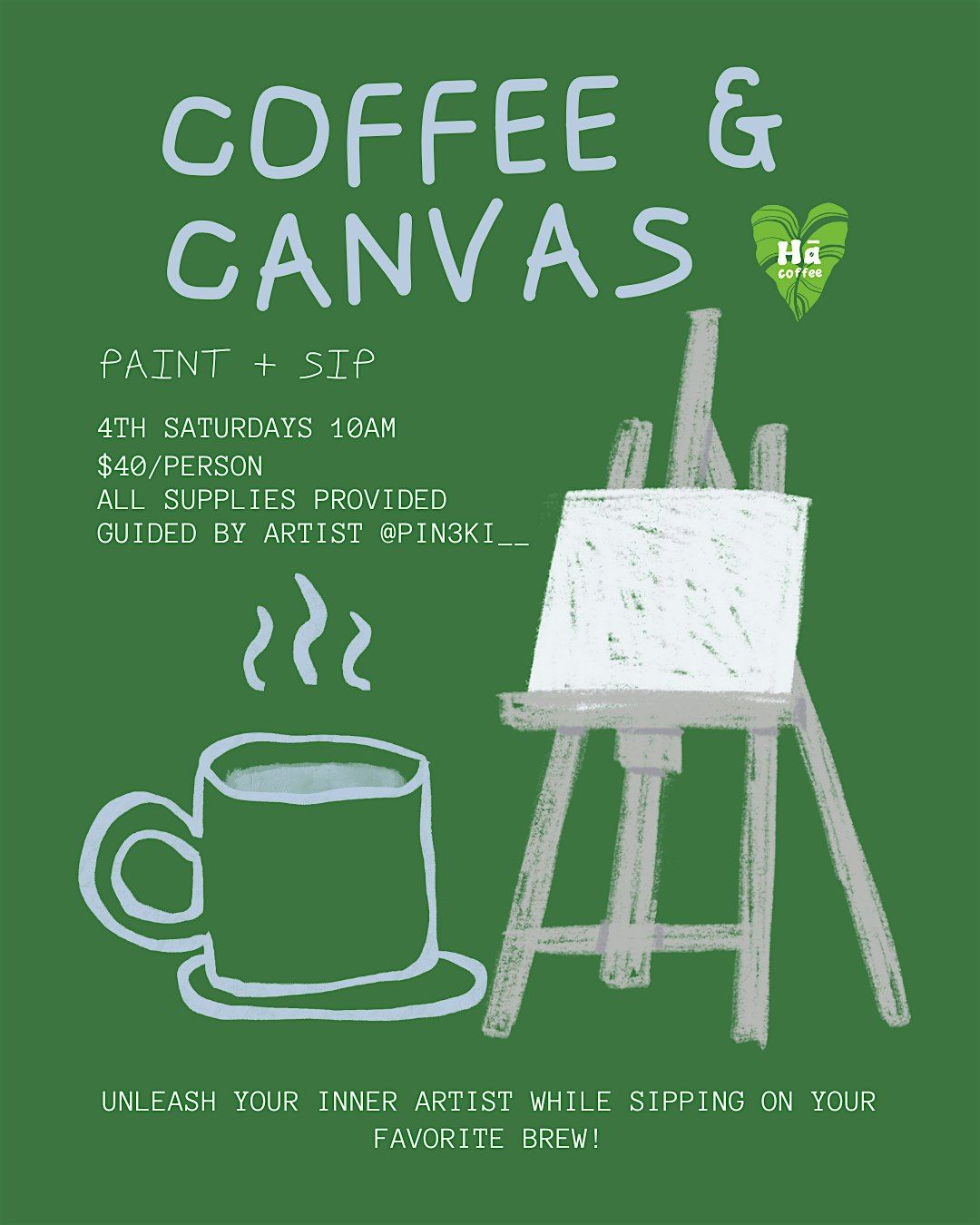 Coffee and Canvas, 4th Saturdays 10am with Pineki