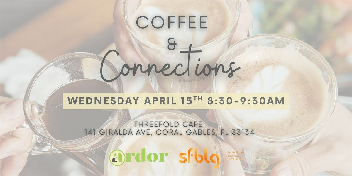 Join us for a relaxed morning at 141 Giralda Ave on April 15, 2026 at 8:30 AM (Eastern Daylight Time). It’s the perfect chance to grab a cup of coffee, meet new people, and make some great connections. Whether you’re looking to network or just chat, this event is all about good vibes and great conversations. Don’t miss out on starting your day with some friendly faces and fresh brews!