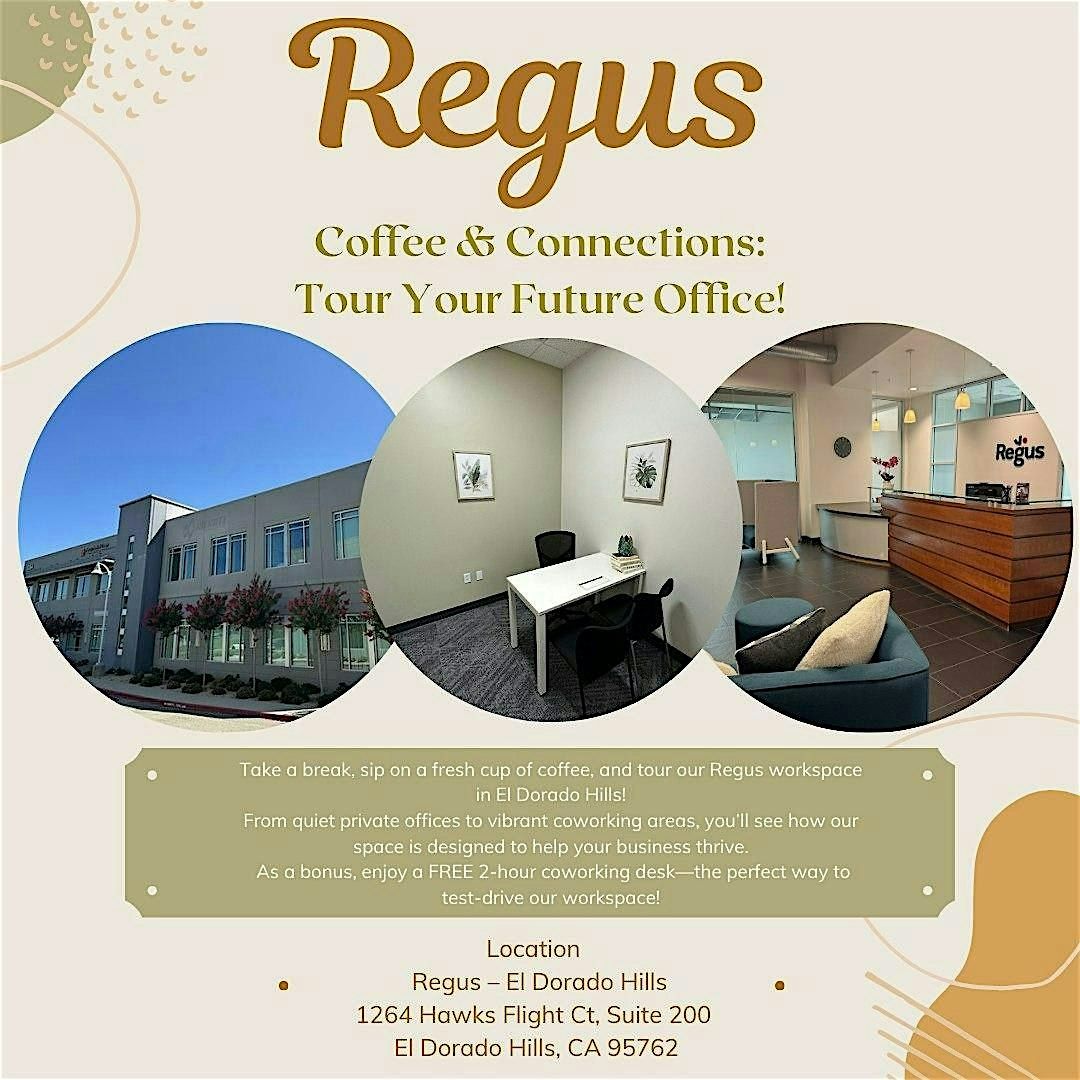 Join us for Coffee & Connections, an exclusive opportunity to explore the Regus workspace in El Dorado Hills! Take a break from your routine, enjoy a fresh cup of coffee, and discover how our thoughtfully designed offices can support your business.