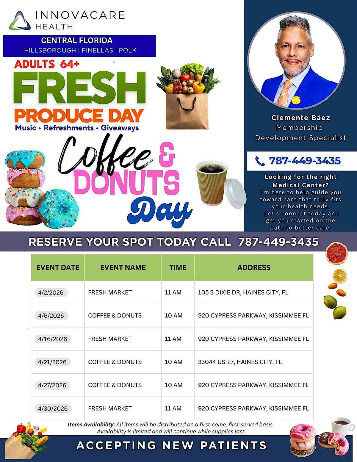 Calling all seniors - Join us at the Orland Family Physician - Poinciana Activity Center for fun, music, coffee & donuts! It's happening on April 6, 2026 at 10:00 AM (Eastern Time). Come grab some coffee & donuts, meet new friends, and enjoy a relaxed, friendly atmosphere. Don’t miss out on this great community event designed to keep you healthy and happy!