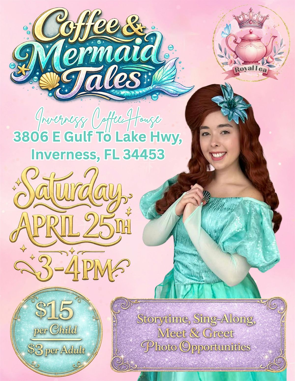 Little guppies will love hearing about Ariel’s adventures beyond the sea while families relax with delicious coffee and sweet treats. It’s the perfect way to spend a magical afternoon together!