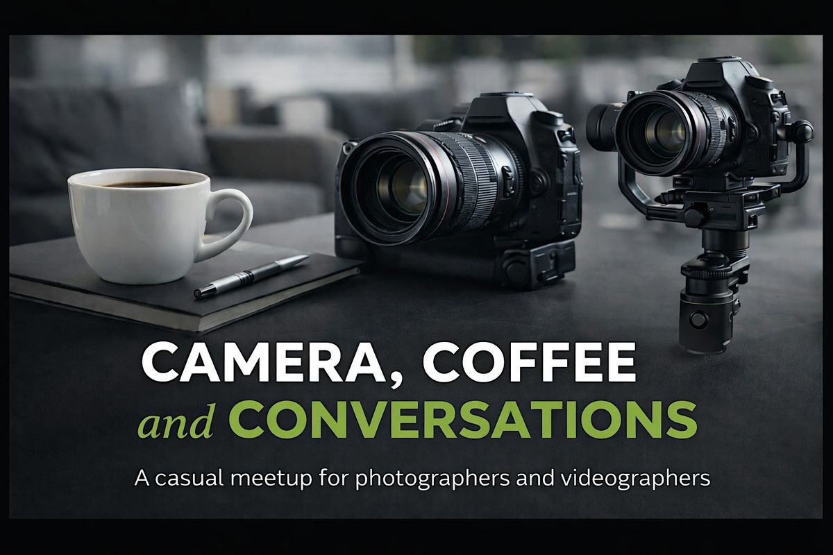 Camera, Coffee, and Conversations is a recurring social meetup created to bring creatives together in a relaxed, supportive environment to talk openly about the photography and video industry. From current trends and business challenges to creative growth and real-world experiences, this is a space for honest conversation and community.