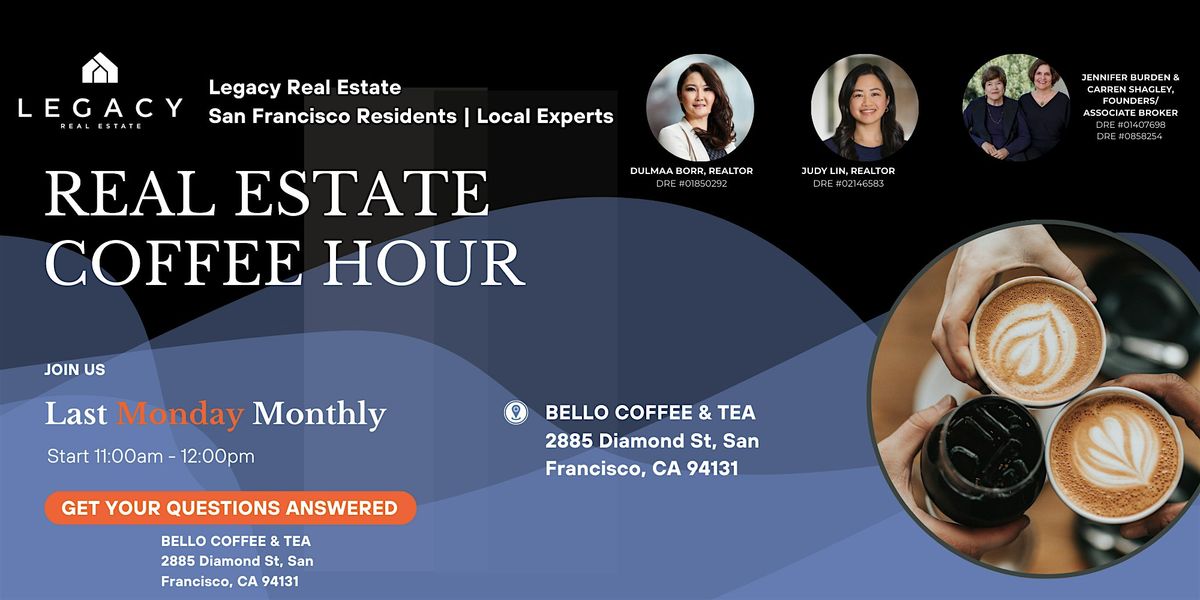 Join us for a casual one-hour Real Estate Coffee Hour at Bello Coffee in Glen Park. This is an open, drop-in event—stop by for a cup of coffee, stay as long or as little as you’d like, and get your real estate questions answered.