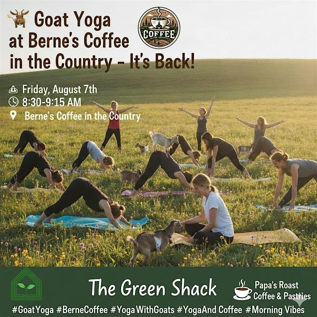 **The class is FREE**, but a tip to the yoga instructor and The Green Shack for providing the goats is respectfully requested.