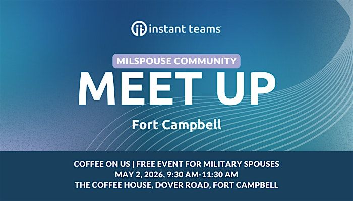 Hey Milspouses! Come join us for a fun and casual in-person meetup near Fort Campbell. It's the perfect chance to grab a cup of coffee (thanks to Instant Teams) and connect with fellow military spouses in the community. Whether you're new to the area or a seasoned pro, this chill gathering is all about sharing stories, making friends, and enjoying some quality time together. Plus, if you're looking for remote jobs, Instant Teams has you covered! Don't miss out on the fun and great company!
