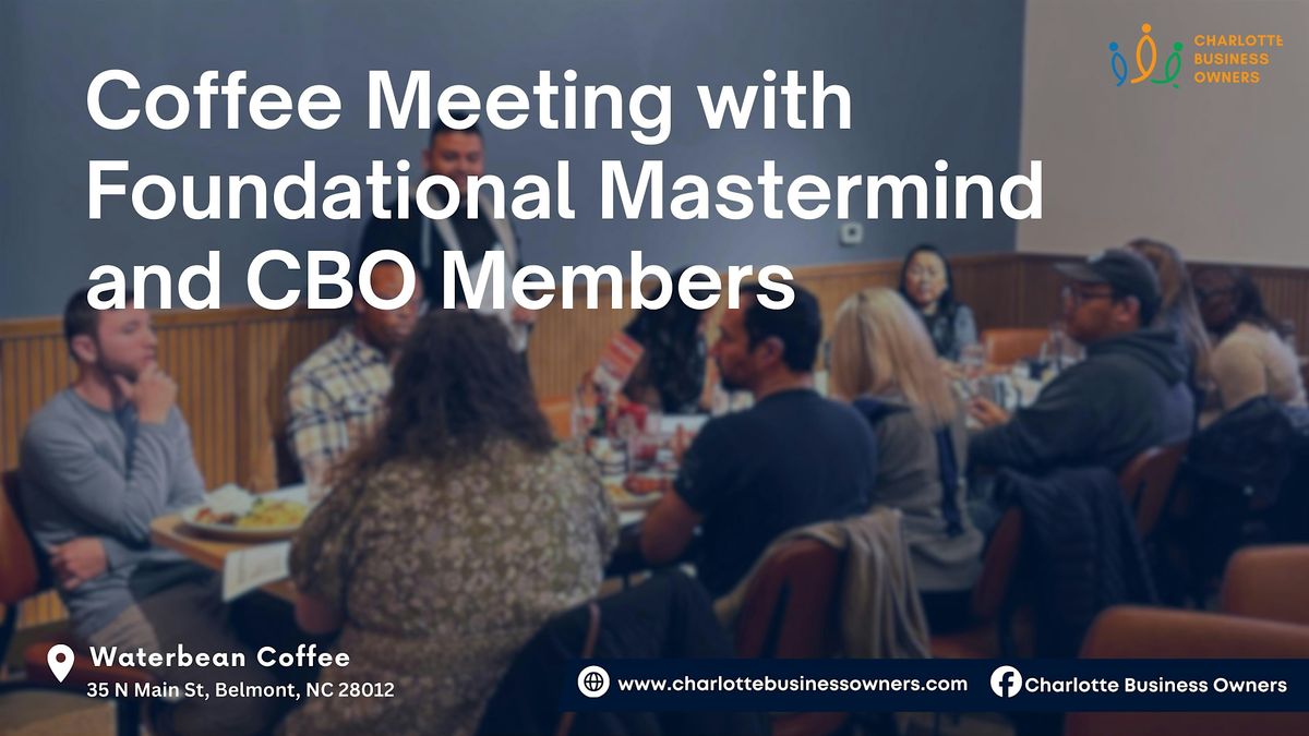 📅 Date & Time: Bi-weekly, every Friday at 8:00 AM- 9:00 AM 📌 Location: Waterbean Coffee (35 N Main St, Belmont, NC 28012, USA)💳 Note: Access requires a CBO Core Membership ($47/month).As a CBO Core Member, you’ll receive exclusive discounts on our Lunch & Learns and Private Dinners, saving $32 on Private Dinners and $5 on Lunch & Learns.