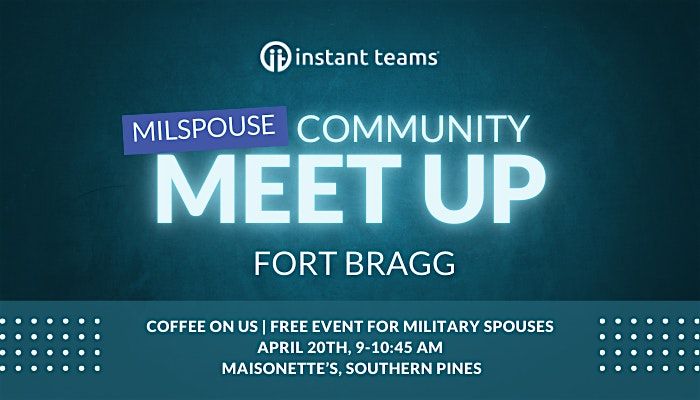 Hey Milspouses! Come join us for a fun and casual in-person meetup near Fort Bragg. It's the perfect chance to grab a cup of coffee (thanks to Instant Teams) and connect with fellow military spouses in the community. Whether you're new to the area or a seasoned pro, this chill gathering is all about sharing stories, making friends, and enjoying some quality time together. Plus, if you're looking for remote jobs, Instant Teams has you covered! Don't miss out on the fun and great company!