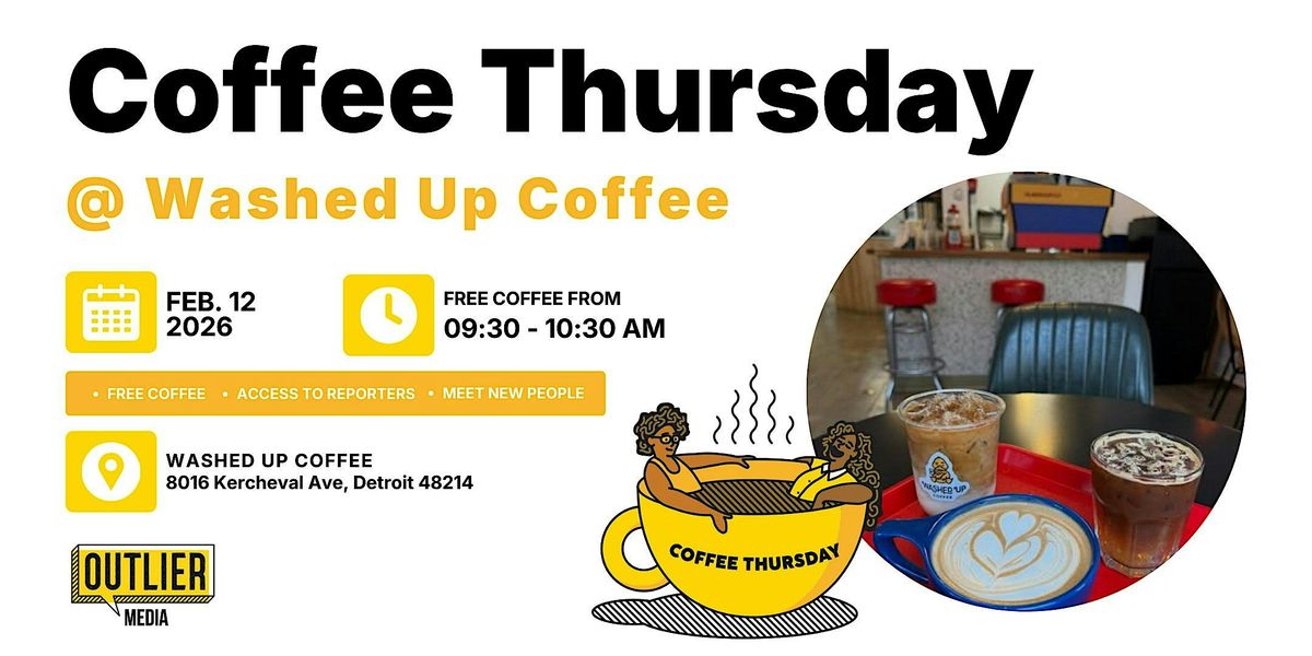 Hey! We're , a nonprofit newsroom that centers the voices of Detroiters. We invite you to join us for Coffee Thursday — we'll buy you a coffee (or tea) and you get the chance to chat with Outlier staff about what's happening in your neighborhood.