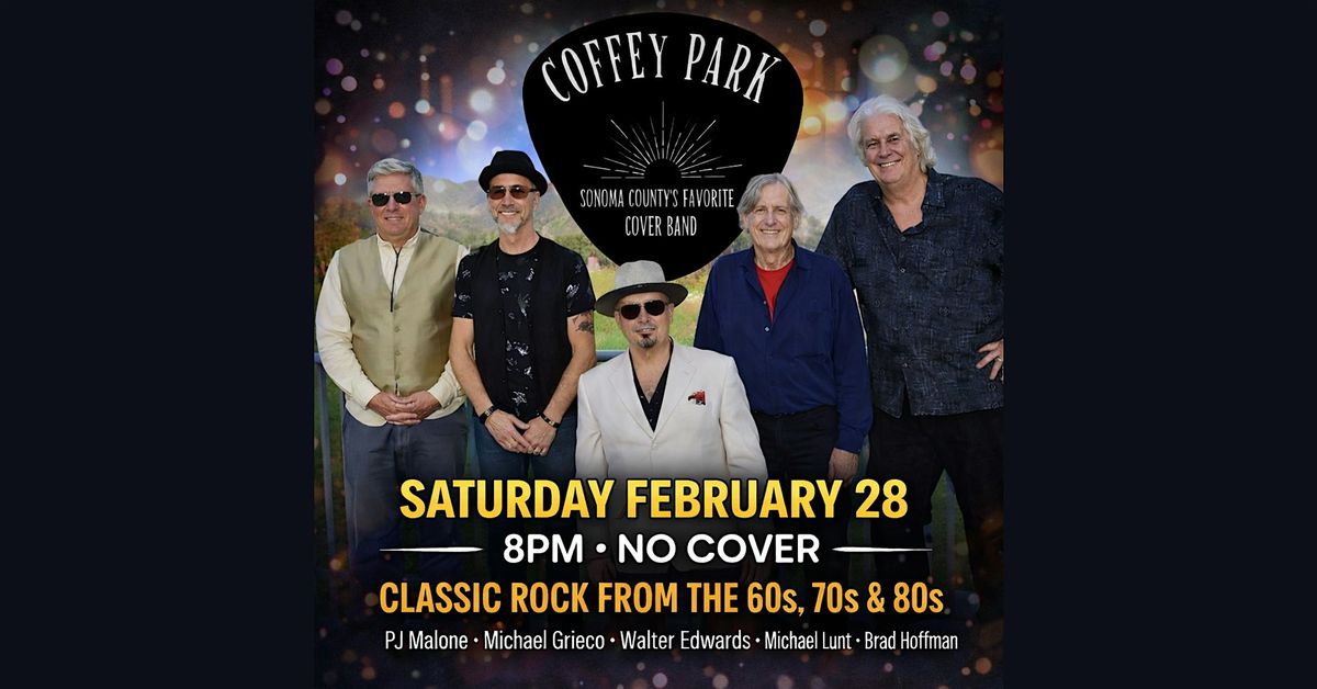 Classic rock fans, this oneโs for you. Coffey Park brings the greatest hits of the 60s, 70s, and 80s to the stage at Barrel Proof Lounge in Downtown Santa Rosa.