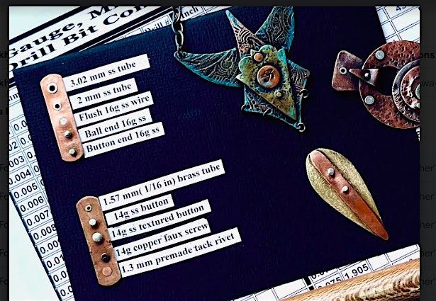In this class you will advance from basic premade tack riveting and add a variety of new riveting techniques to approach more complex designs and architecture. Creating and setting tack head, nail head, ball head, button rivets and eyelets from tubing, you’ll learn to drill precise holes for thicker rivets and more layered pieces. You’ll also learn to use rivets both functionally and decoratively.