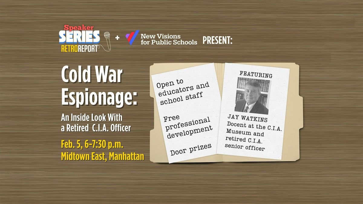 Guest speaker Jay Watkins, a docent at the C.I.A. Museum and retired C.I.A. officer, will give a presentation on espionage tactics and gadgets used during the Cold War. Retro Report’s director of Education, David Olson, will conduct a discussion and Q&A.