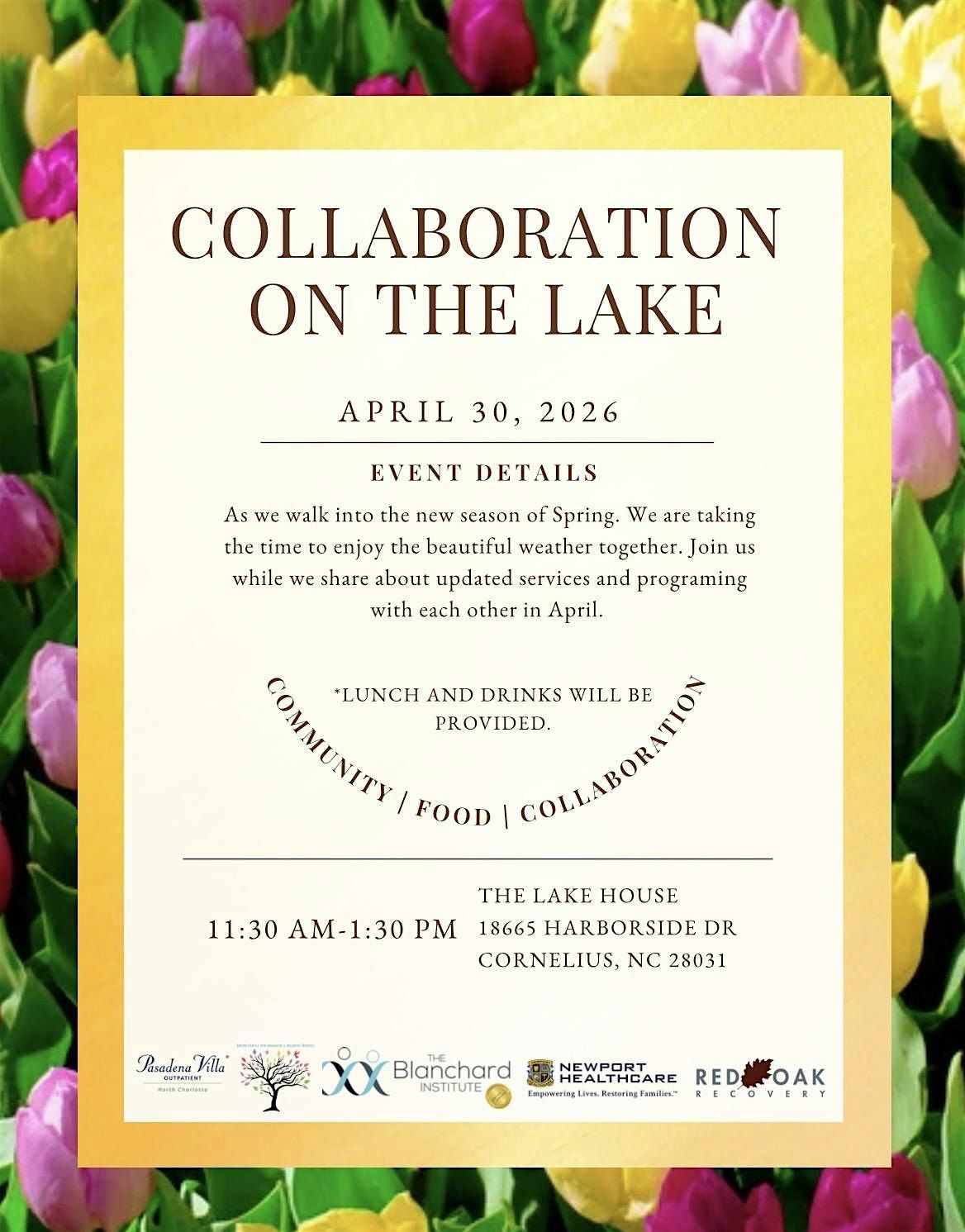 Collaboration On the Lake is a special event happening at The Lake House restaurant. Join us for a day filled with collaborating, good vibes, and beautiful views. Let's come together to discuss updated services and programming. This in-person event will be a great opportunity to connect. We are looking forward to seeing you soon.